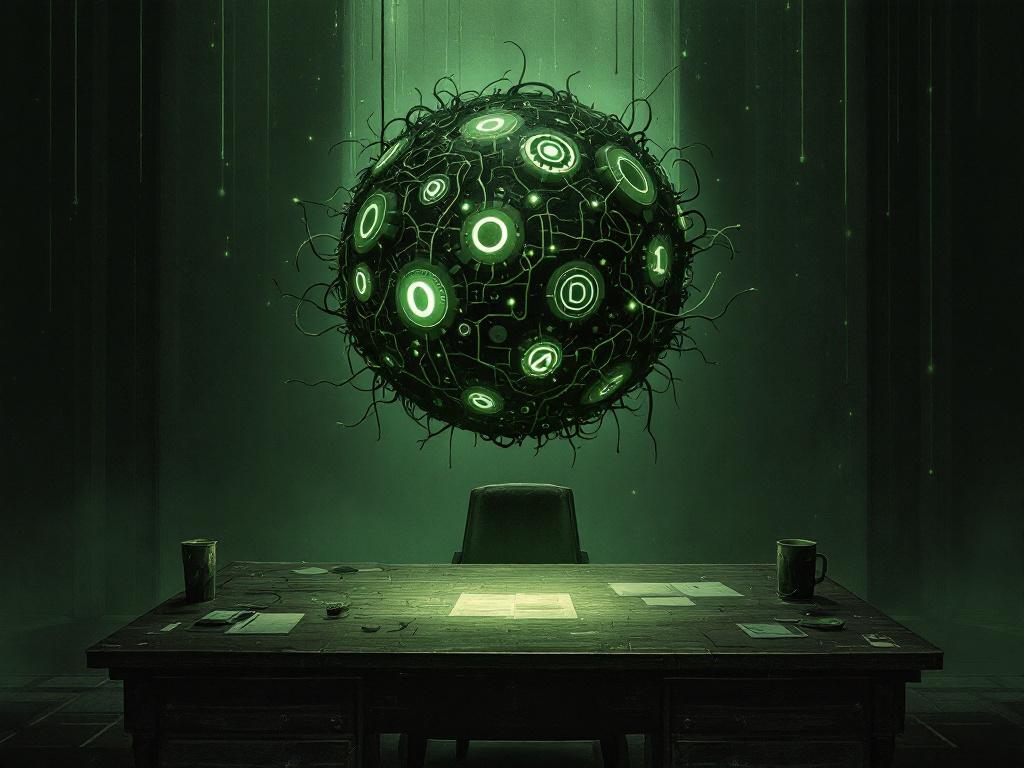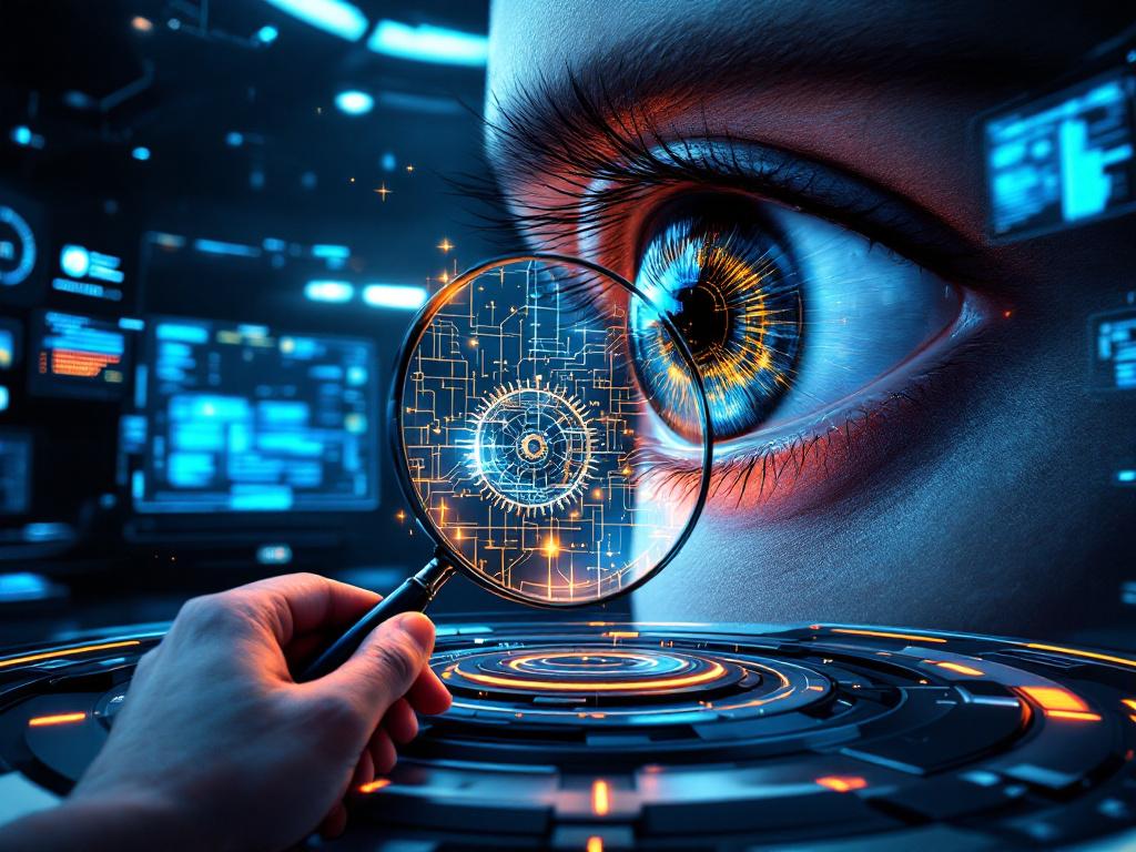 Die von meinem AI-Assistenten generierte HOTL-Illustration bricht mit dem freundlichen Farbschema der HITL-Darstellung und bietet Raum für verschiedene Interpretationen: Wer überwacht hier eigentlich wen?