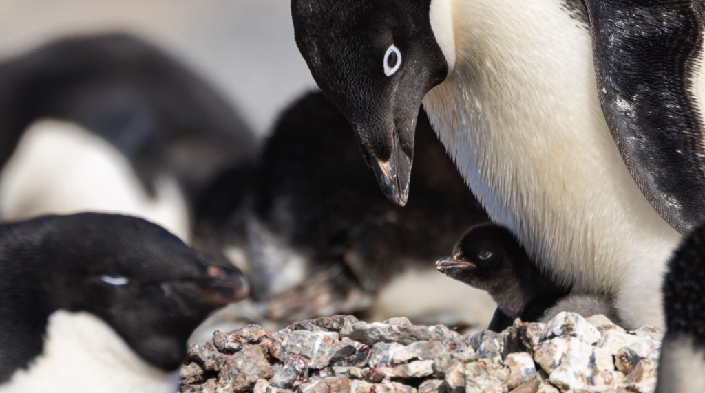 Die Adelies hatten bereits Küken, als wir sie besucht haben: