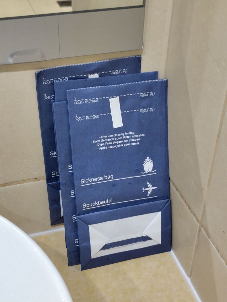 Seekrankheit ist auch bei einem „Drake Lake“ für die Landratten ein Thema. Schiffsärztin Dr. Rae gibt umfassenden medizinischen Rat und empfiehlt vor allem die präventive Einnahme von Meclozin und verwandten Präparaten. Dem komme ich gerne nach und das hilft mir und der überwiegenden Mehrheit der Personen auf dem Schiff auch sehr gut.