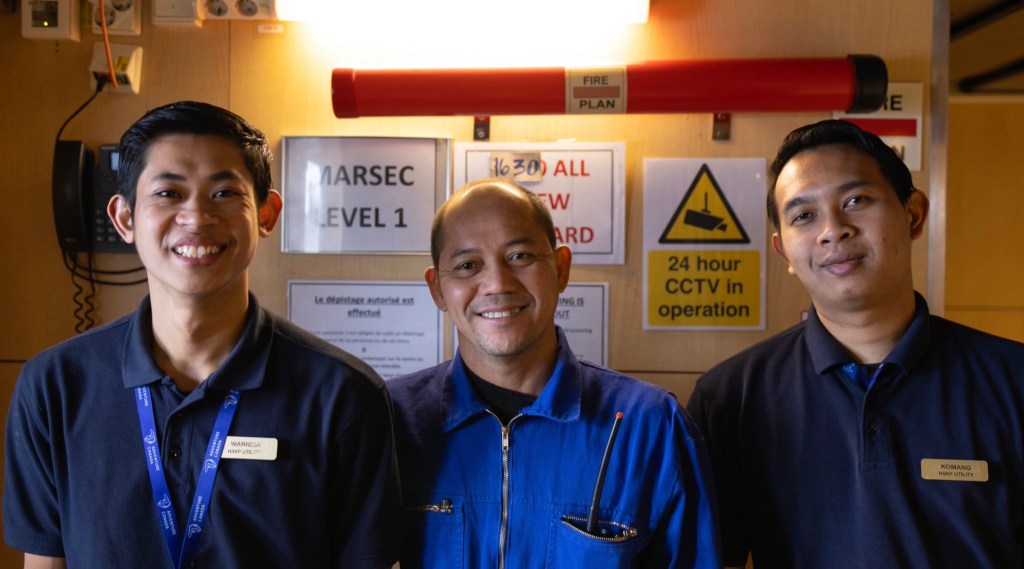 Die Crew stammt hauptsächlich von den Philippinen, der Kapitän („Captain Jacques“) kommt aus Südafrika, der Navigator aus Spanien, und der Rest der Besatzung aus aller Herren Länder.