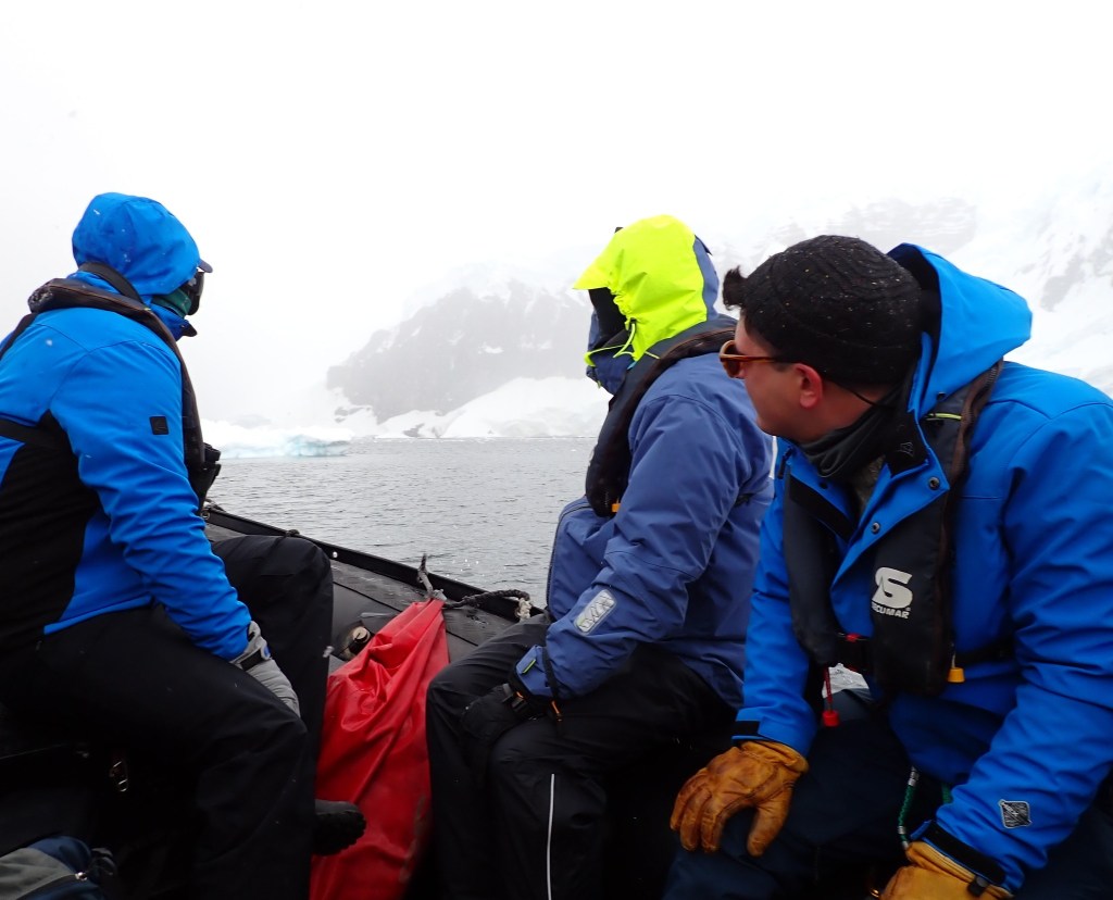 Dennoch wird die Antarktis in grossem Stil (aus-)genutzt, früher hauptsächlich durch den Walfang, später durch den Fischfang, und heute sehen wir mit eigenen Augen die zerstörerischen Auswirkungen des Krillfangs. Obwohl dieser angeblich in den empfindlichen Gebieten weitgehend eingestellt wurde und die Krillindustrie sich selbst verpflichtet hat (…kein weiterer Kommentar an dieser Stelle), die Pufferzonen einzuhalten, sehen wir an 2 verschiedenen Tagen Krillfänger unterwegs – und beide Male in den Pufferzonen. Ein entsprechender Tipp an eine entsprechende Organisation ging daher umgehend raus.