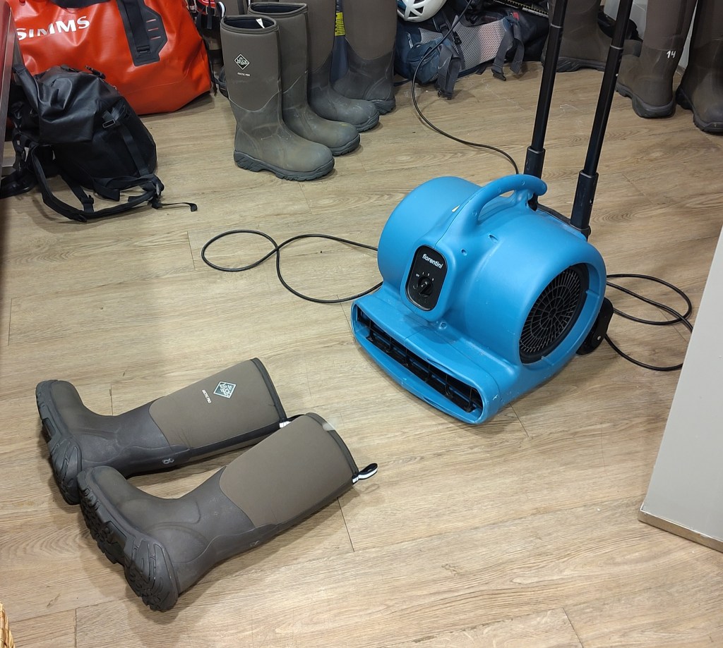 Im sogenannten „Mudroom“, ebenfalls in einem der unteren Decks und in kurzer Distanz zur Zodiak Gangway, wird die schwere und oftmals nasse Ausrüstung aufbewahrt, bzw. getrocknet. Damit man sich beim Anziehen nicht die Quere kommt, sind wir in Gruppen eingeteilt, die nacheinander aufgerufen werden.