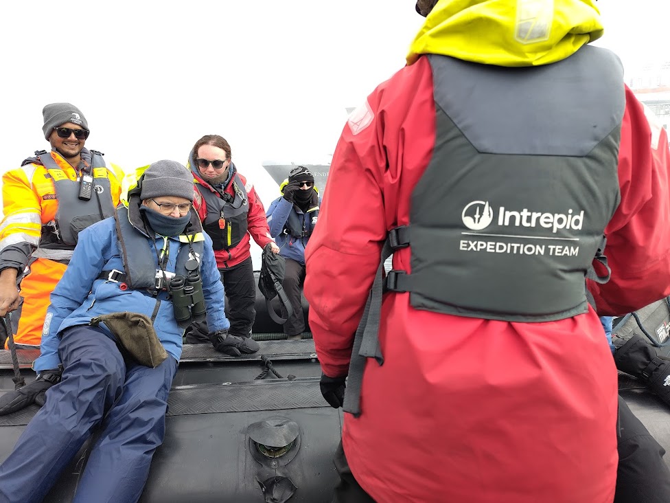 Eisberge sind unberechenbar, weil sie sich jederzeit drehen können. Wir haben das mehrfach erlebt, das geschieht in der Tat sehr plötzlich und bewegt erhebliche Mengen Wasser. Aus diesem Grund sind von der sichtbaren Höhe des Eisbergs abgeleitete Sicherheitsabstände vorgeschrieben, die man sich maximal einem Eisberg annähern darf. Der entstehende Wellengang kann dennoch unerfreulich werden. Gelangt bei so einer Aktion dann z.B. auch einmal Wasser in die Hydraulikflüssigkeit und der Motor des Zodiaks steigt in Folge aus, evakuiert man auf dem Wasser. Das ist uns auch ein Mal passiert.