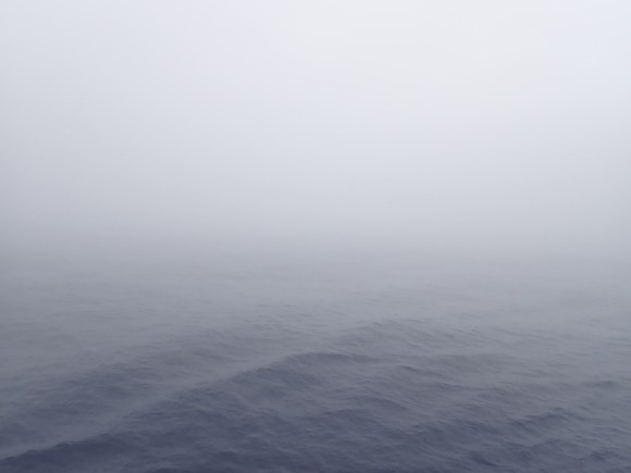 Innerhalb der Konvergenzzone passiert sehr viel Wetter auf einmal, was dazu führt, dass Meer und Himmel durch den Dunst zu einem weissen Nichts verschmelzen. Man nennt diesen Zustand auch „the inside of a ping pong ball“, da der Horizont nicht mehr zu erkennen ist. Ein wahrlich gespenstischer Zustand: Der Dunst schluckt den Lärm der Maschinen, kein Vogel ist zu hören, das Schiff bewegt sich fast lautlos und um einen herum ist nur Weiss.